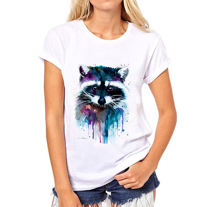 Dámské tričko s krátkým rukávem a potiskem mýval. Podrobný popis